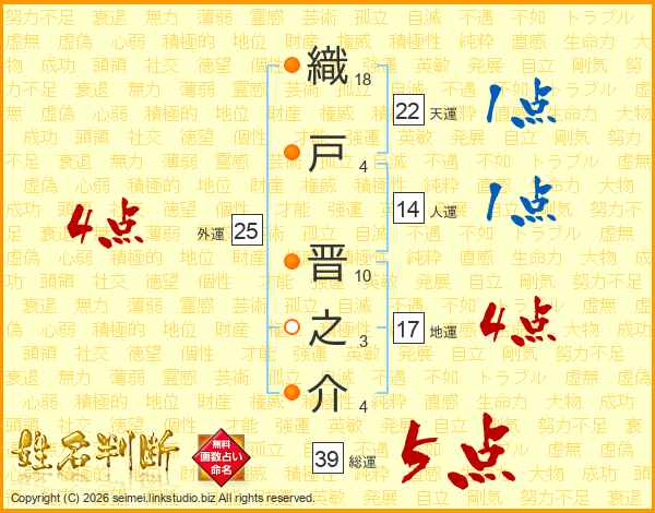 織戸晋之介さんの天運は22画の1点!