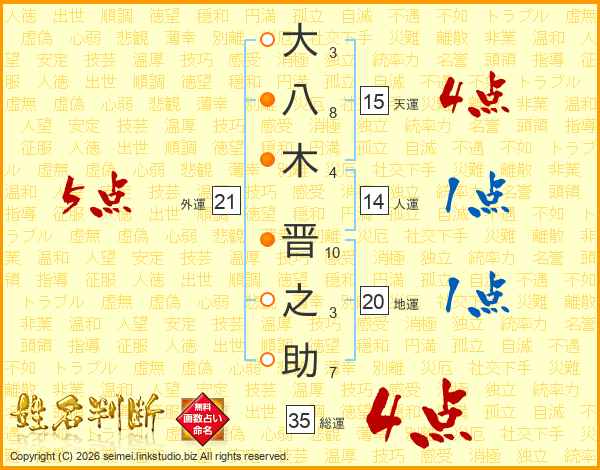 大八木晋之助さんの総運は35画の4点!