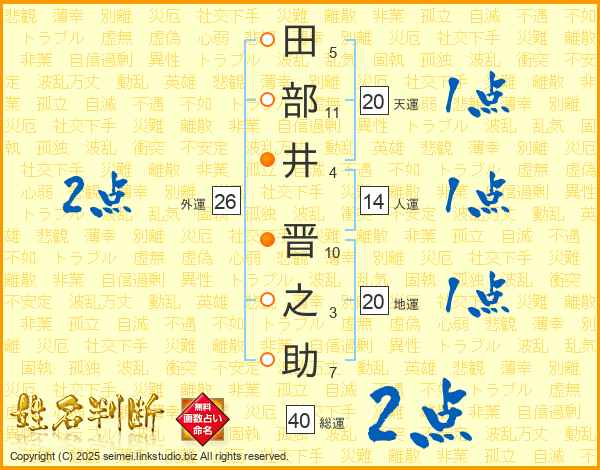 田部井晋之助さんの総運は40画の2点!