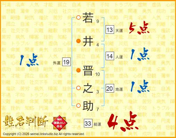 若(9画)井(4画) 晋(10画)之(3画)助(7画)