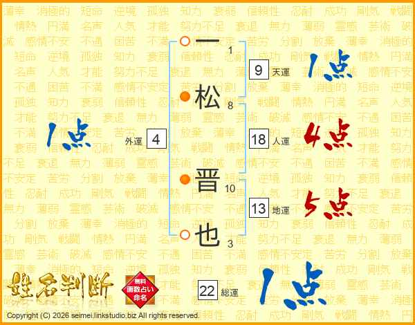 一松晋也さんの人運は18画の4点!
