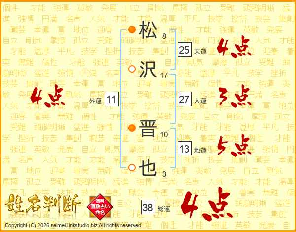 松沢晋也さんの総運は38画の4点!