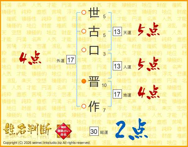 世古口晋作さんの天運は13画の5点!