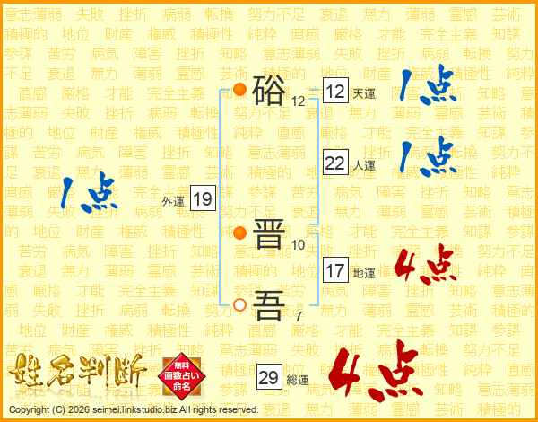 硲晋吾さんの総運は29画の4点!