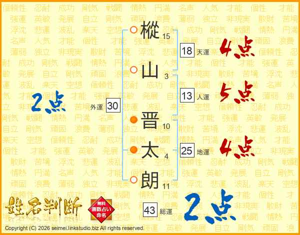 樅山晋太朗さんの人運は13画の5点!