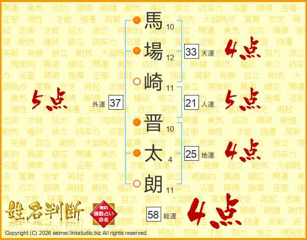 馬場崎晋太朗さんの天運は33画の4点!
