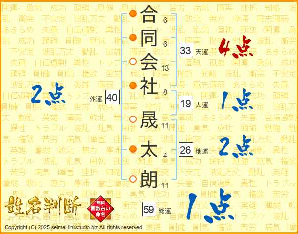 合同会社晟太朗さんの天運は33画の4点!