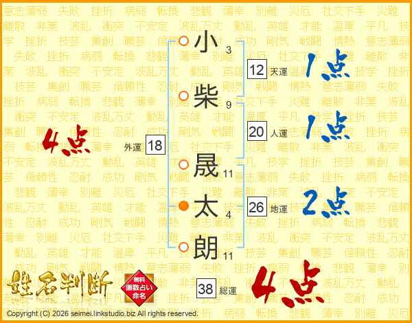 小柴晟太朗さんの総運は38画の4点!