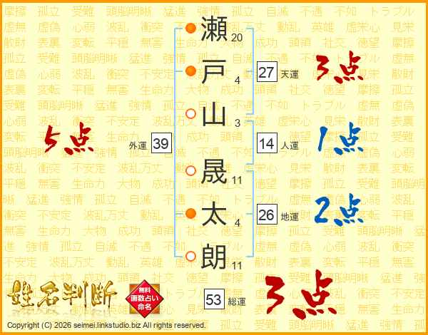 瀬戸山晟太朗さんの外運は39画の5点!