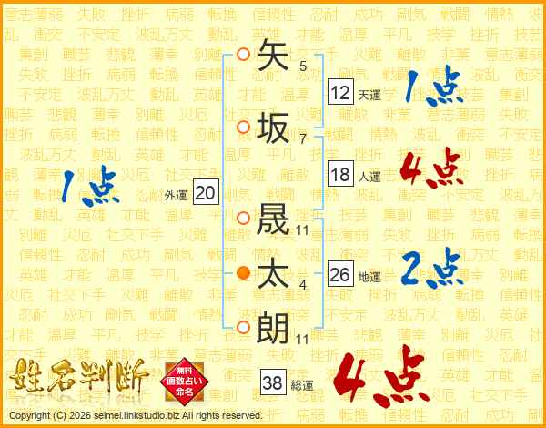 矢坂晟太朗さんの総運は38画の4点!