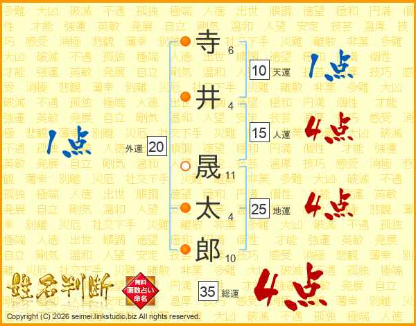 寺(6画)井(4画) 晟(11画)太(4画)郎(10画)