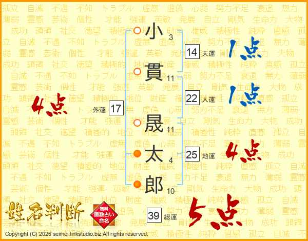 小貫晟太郎さんの総運は39画の5点!