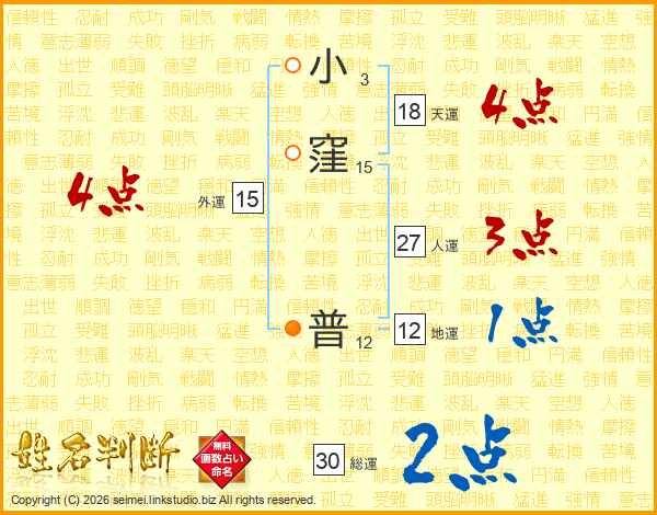 小窪普さんの総運は30画の2点!
