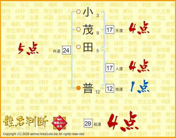 小茂田普さんの天運は17画の4点!
