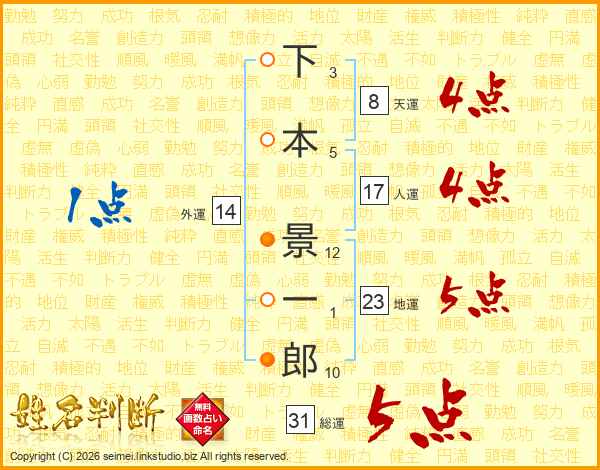 下(3画)本(5画) 景(12画)一(1画)郎(10画)