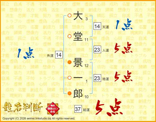 大(3画)堂(11画) 景(12画)一(1画)郎(10画)
