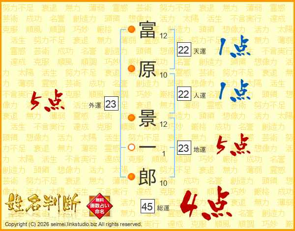 富(12画)原(10画) 景(12画)一(1画)郎(10画)