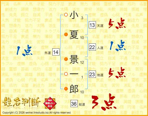 小夏景一郎さんの総運は36画の3点!
