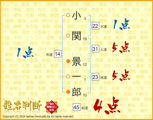 小関景一郎さんの総運は45画の4点!