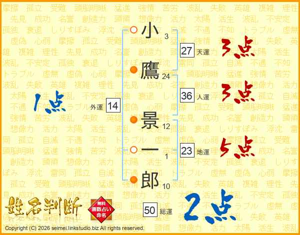 小鷹景一郎さんの総運は50画の2点!