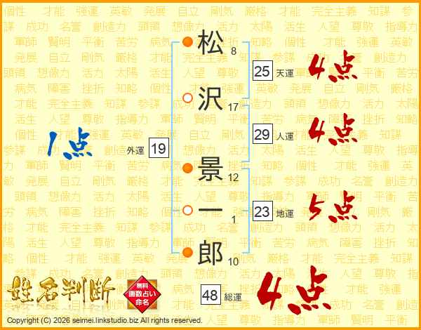 松沢景一郎さんの総運は48画の4点!