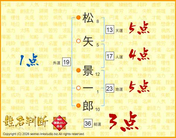 松矢景一郎さんの総運は36画の3点!