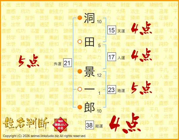 洞田景一郎さんの総運は38画の4点!
