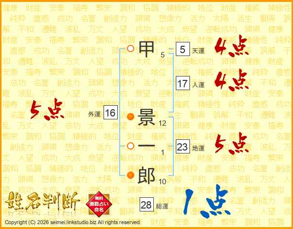 甲景一郎さんの総運は28画の1点!