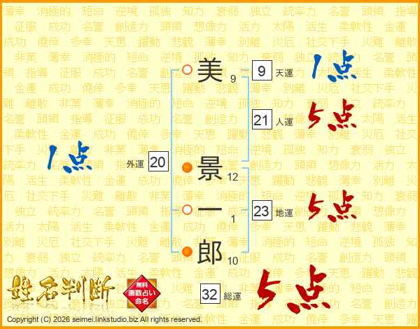 美景一郎さんの総運は32画の5点!