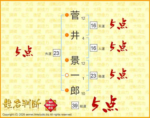 菅井景一郎さんの総運は39画の5点!