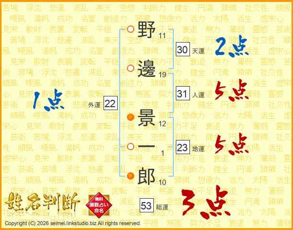 野邊景一郎さんの人運は31画の5点!