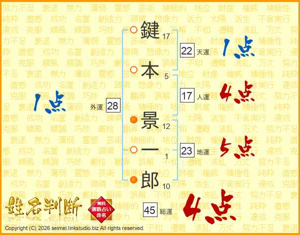 鍵本景一郎さんの総運は45画の4点!