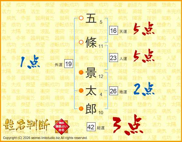 五條景太郎さんの人運は23画の5点!
