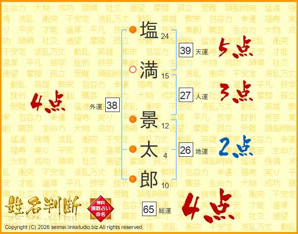 塩(24画)満(15画) 景(12画)太(4画)郎(10画)