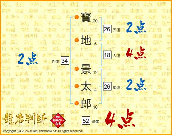 寳地景太郎さんの総運は52画の4点!