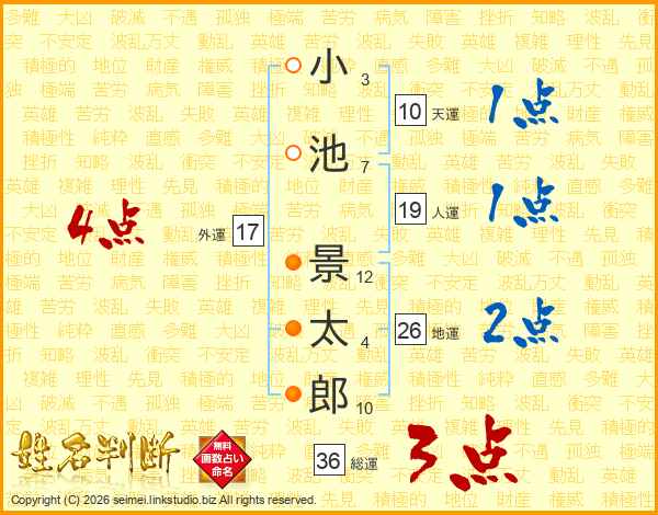 小池景太郎さんの地運は26画の2点!