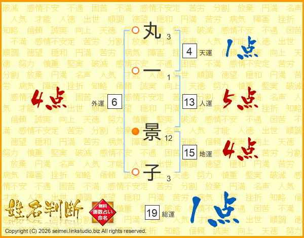 丸一景子さんの総運は19画の1点!