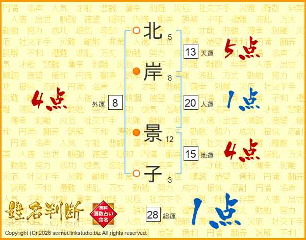 北岸景子さんの総運は28画の1点!