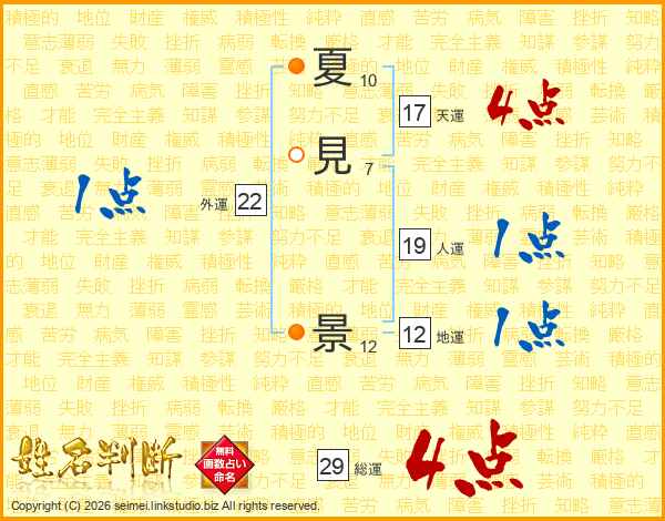 夏見景さんの総運は29画の4点!