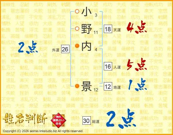 小野内景さんの天運は18画の4点!