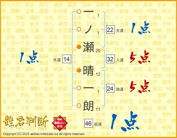 一ノ瀬晴一朗さんの総運は46画の1点!