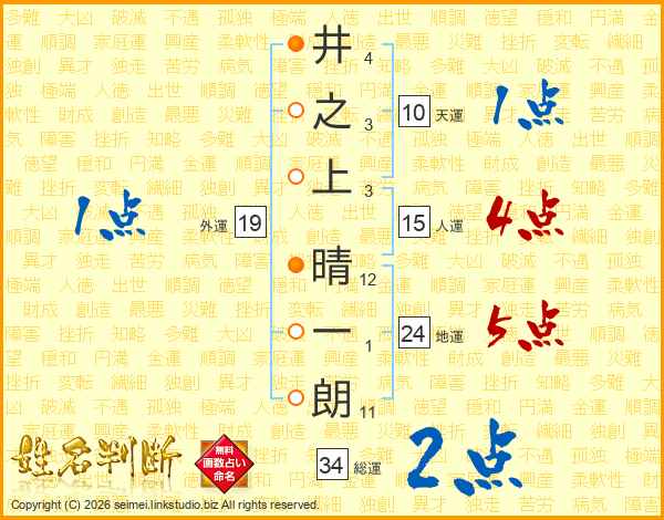 井之上晴一朗さんの総運は34画の2点!