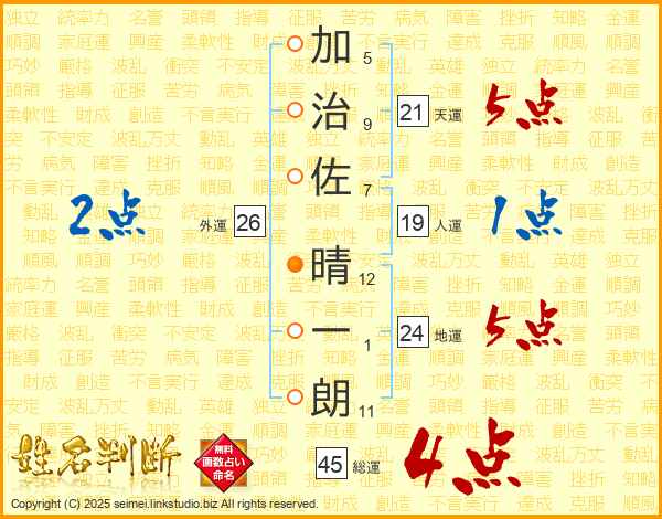 加治佐晴一朗さんの総運は45画の4点!