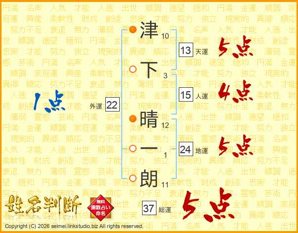 津下晴一朗さんの総運は37画の5点!