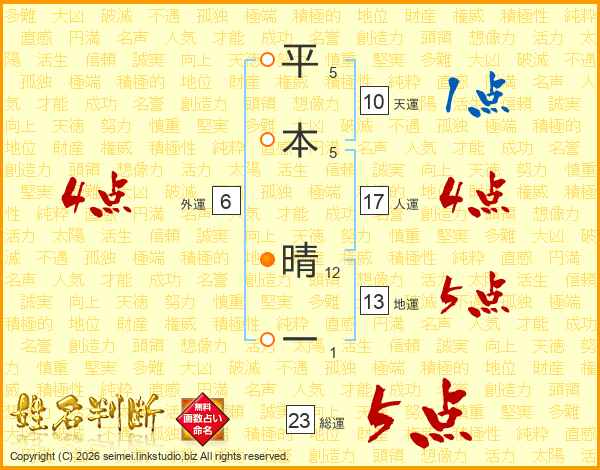 平本晴一さんの総運は23画の5点!