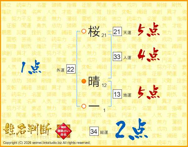 桜晴一さんの人運は33画の4点!