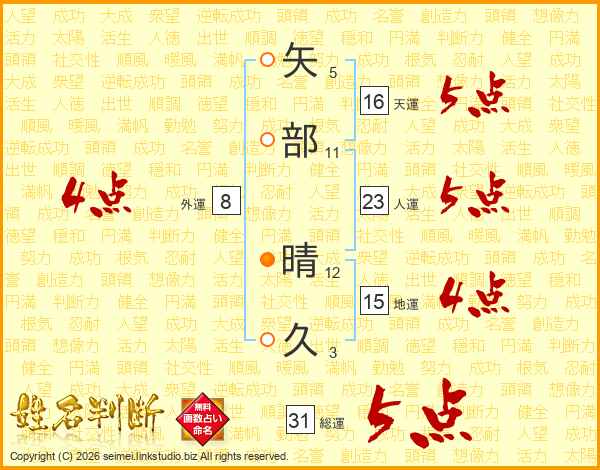 矢部晴久さんの総運は31画の5点!