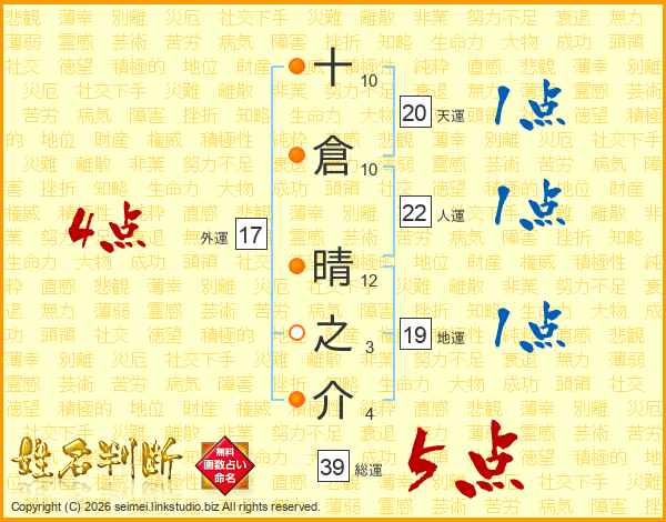 十(10画)倉(10画) 晴(12画)之(3画)介(4画)
