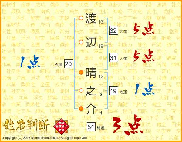 渡辺晴之介さんの総運は51画の3点!