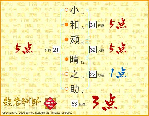 小和瀬晴之助さんの天運は31画の5点!